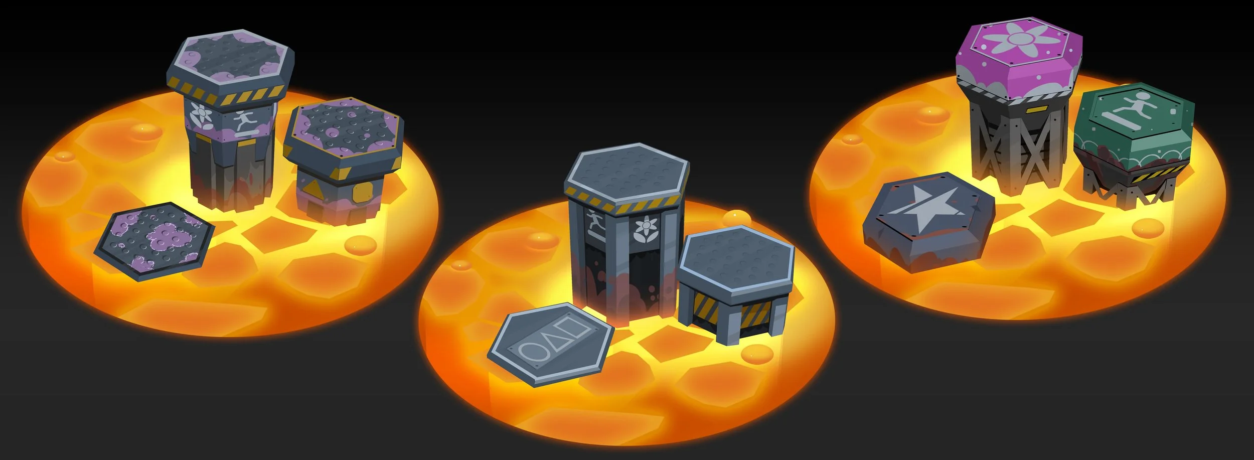 Once we had the style under control, I pivoted back to designing and building out the various arenas, obstacles, and 3D assets of the game.