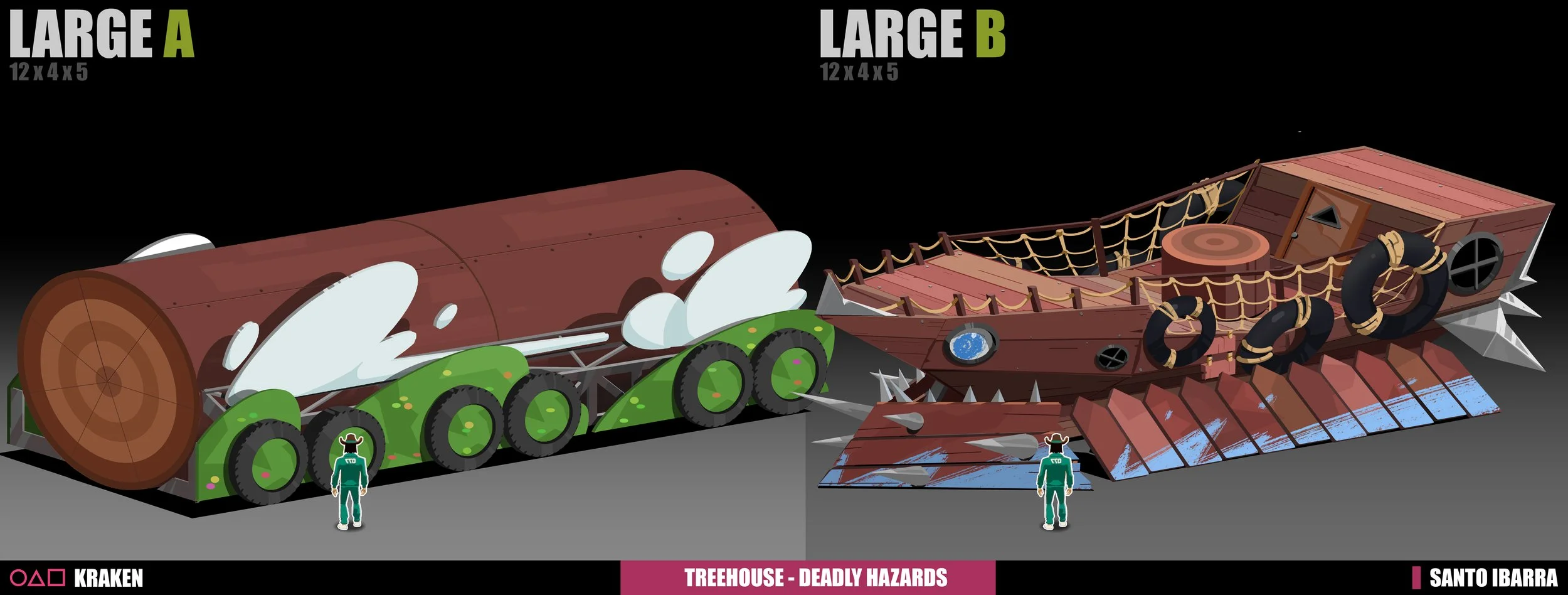 From 2022 to 2025, I worked as a Senior Concept Artist at Netflix, where I helped make Squidgame Unleashed. In Addition to my design work, I had the pleasure of serving in a modeling, texturing, lighting, and Unity art capacity as well. This project taught me the most about art optimization for mobile games, as I personally had to build out environments in Unity that could effectively run on mobile while supporting up to 32 live players. I was also asked to help build out marketing illustrations that were later optimized as we uncovered better data about what our target players were visually drawn to.